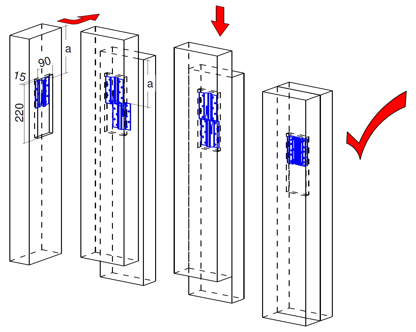La fresatura è necessario solo su 1 lato e deve avere una profondità di 15 mm, una larghezza di 90 mm e una lunghezza minima di 220 mm.