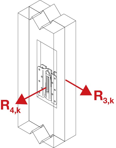 *Rlat,k è la capacità laterale degli elementi di fissaggio, Rax,k è la capacità assiale degli elementi di fissaggio, kmod è il fattore di modifica per la durata del carico e il contenuto di umidità.