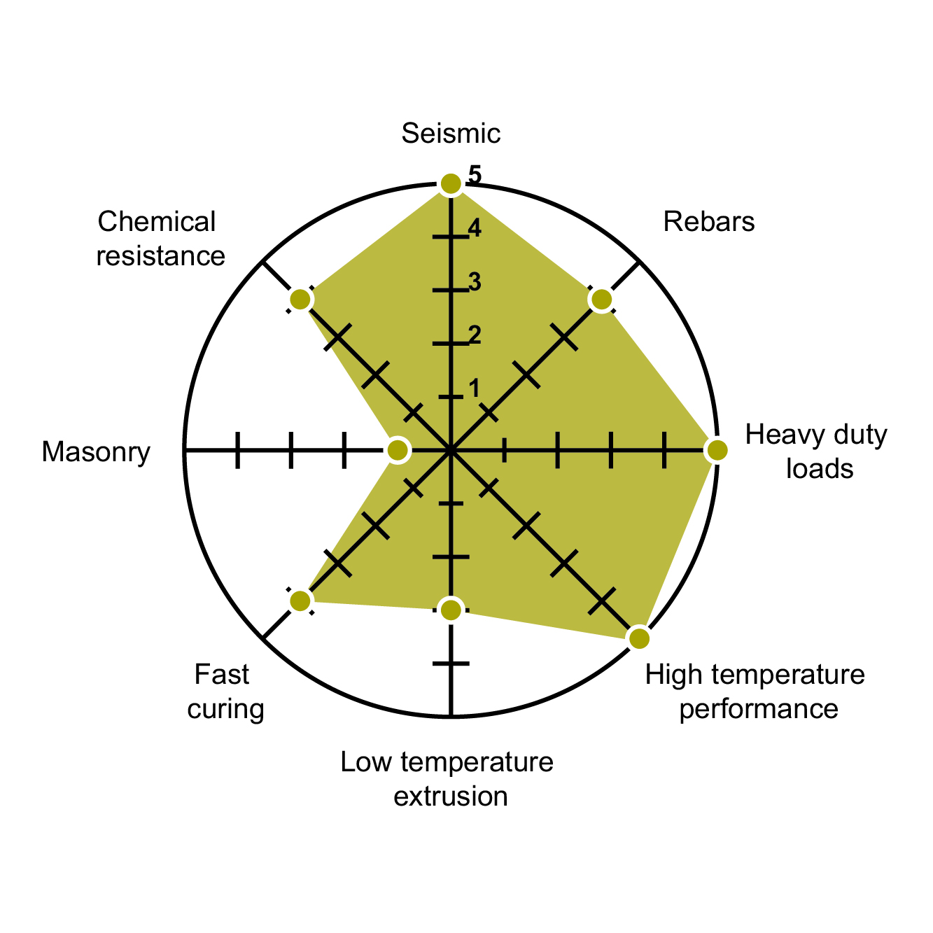 This formula provides high performances when anchoring threaded rods and rebar in cracked and uncracked concrete.
