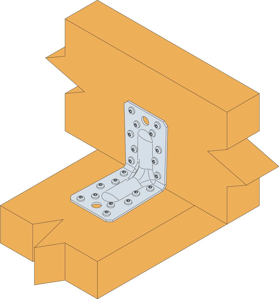 Le piastre di fissaggio angolari rinforzate sono adatte per applicazioni strutturali in case con struttura in legno e intelaiature.