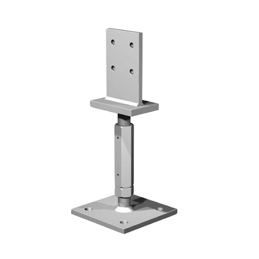 Il portapilastro regolabile a scomparsa PJIBG è adatto pilastri con sezioni a partire da 80mm. Può sopprtare sia carichi verticali che orizzontali ed è fissato al basamento in calcestruzzo tramite ancoranti.
