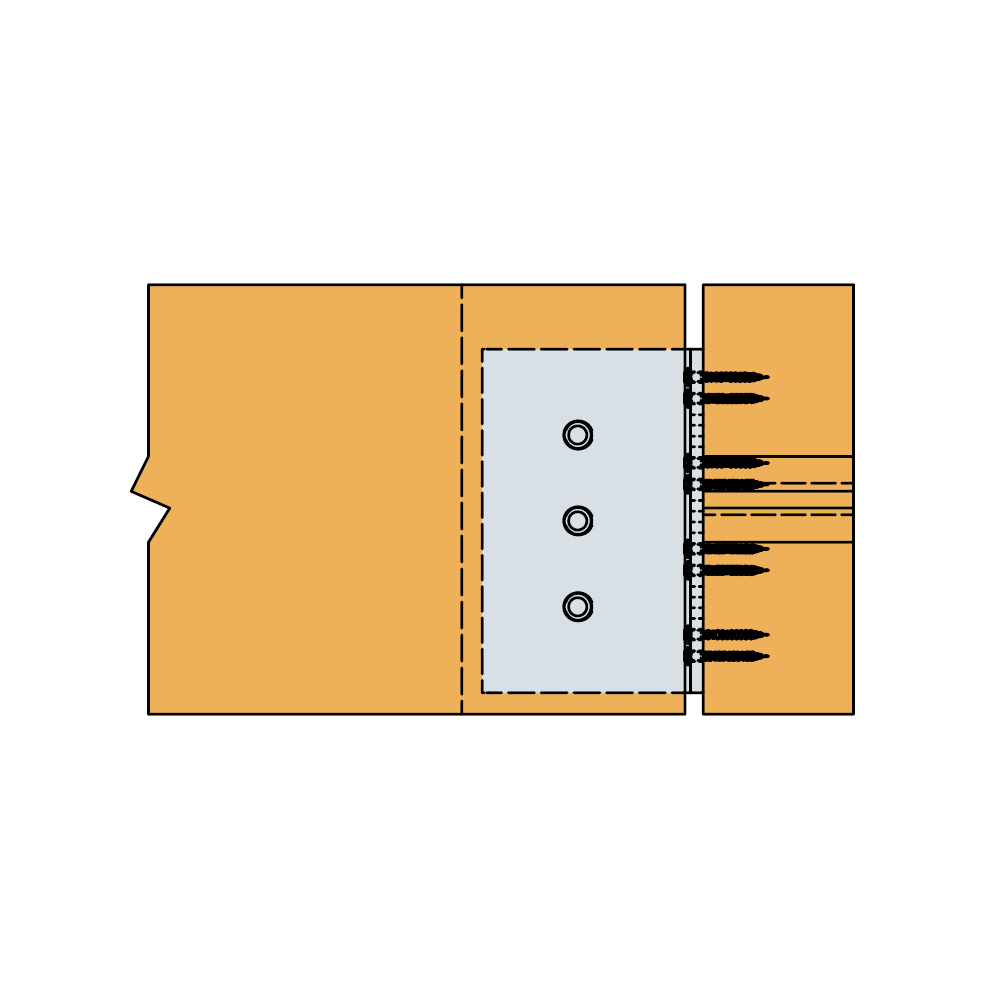 - Per la connessione di travi secondarie di legno alla struttura portante principale di legno.