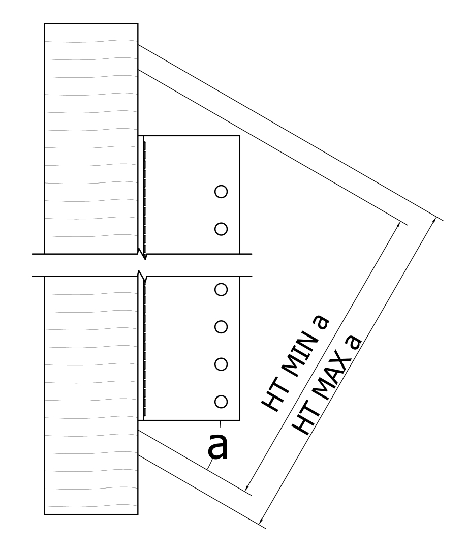 La dimensione A può essere inferiore fino a 4 mm rispetto all'intaglio nella trave secondaria; il taglio della misura A deve essere effettuato tra i fori per i chiodi del lato corto.