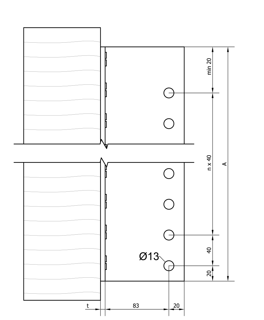 I fori sulla trave secondaria devono essere eseguiti secondo lo schema in ETA 07/0245.