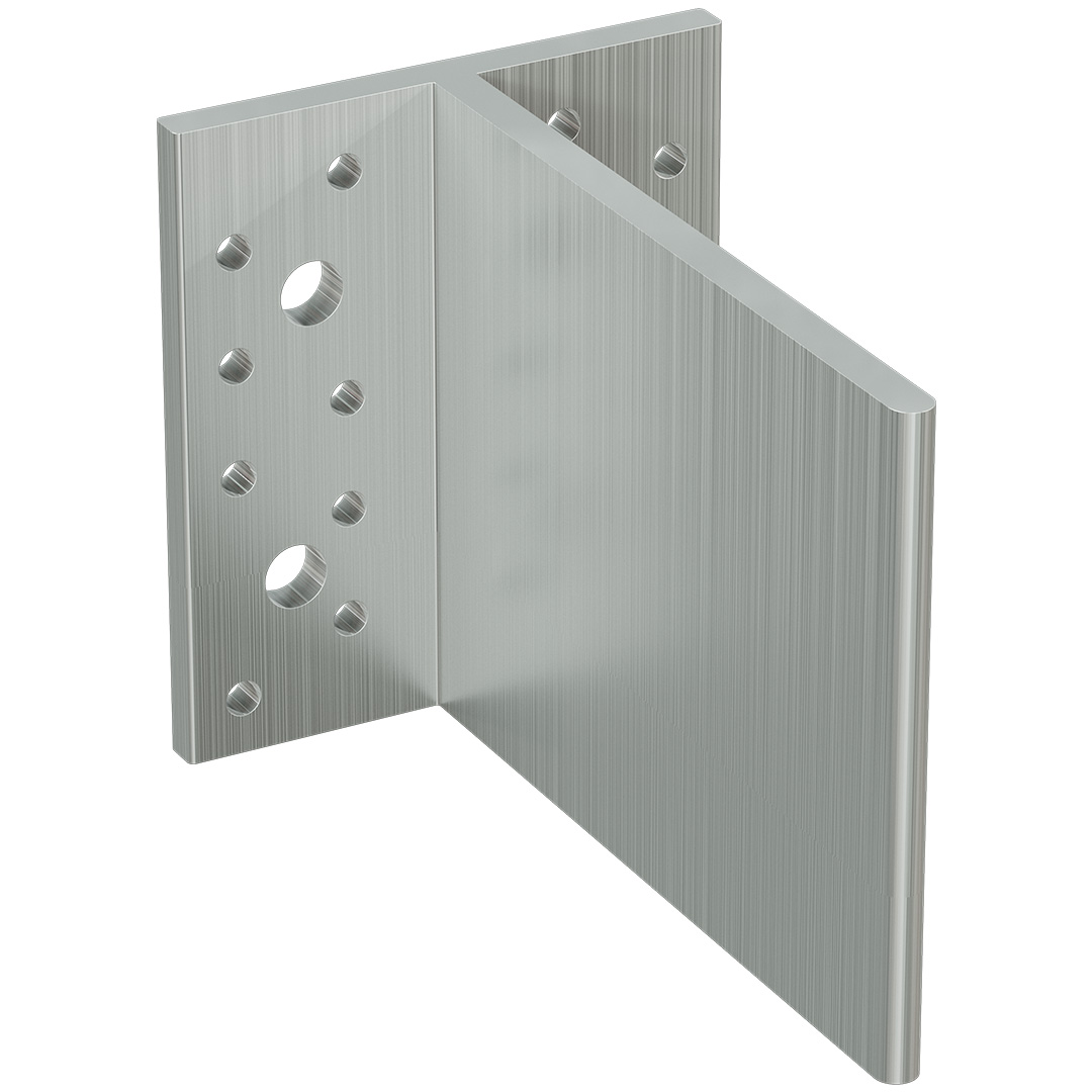 Il sistema è costituito da un profilo estruso in alluminio realizzato in un unico pezzo. La flangia si inserisce in una fessura pretagliata nell’elemento ligneo e viene fissata con spinotti autoforanti o lisci.