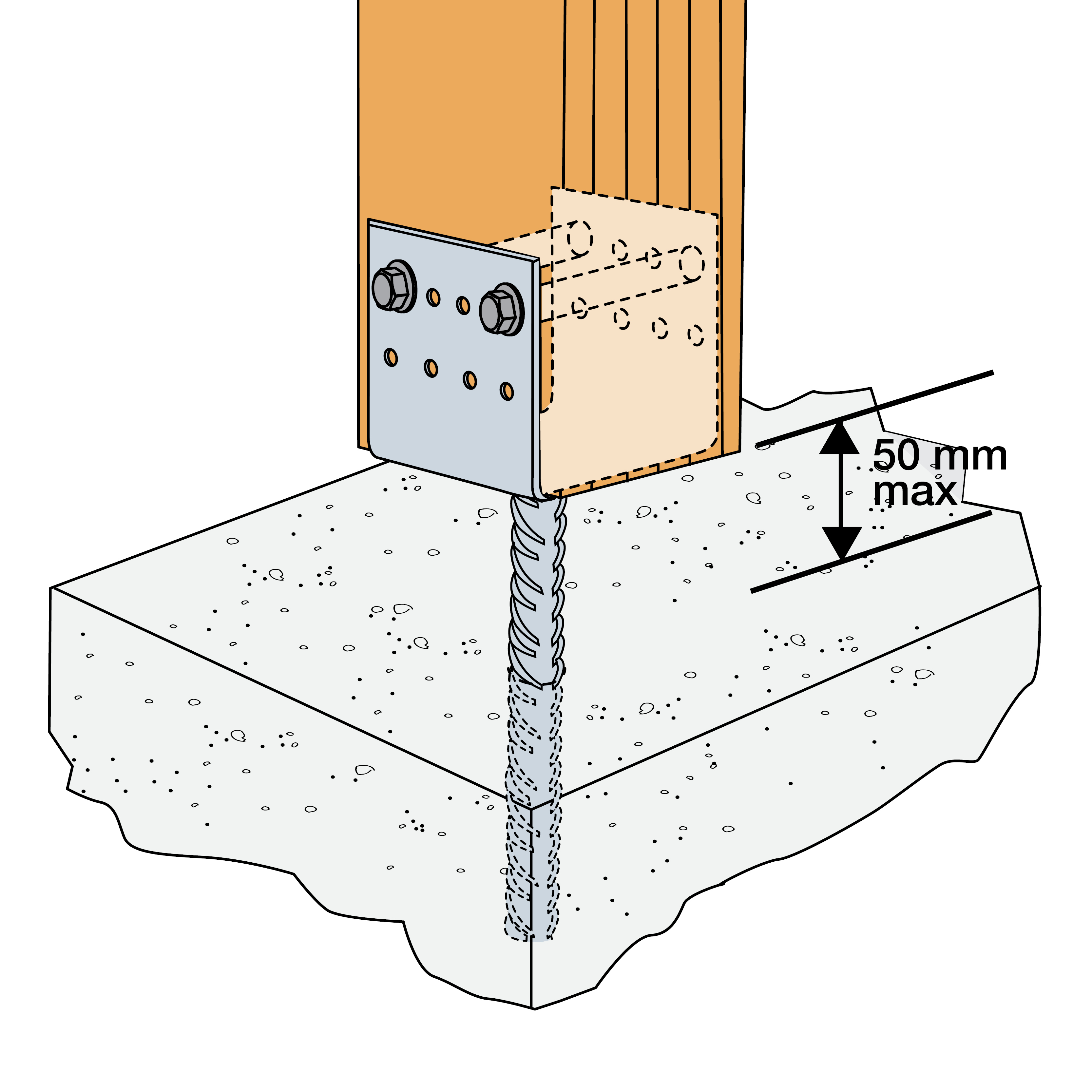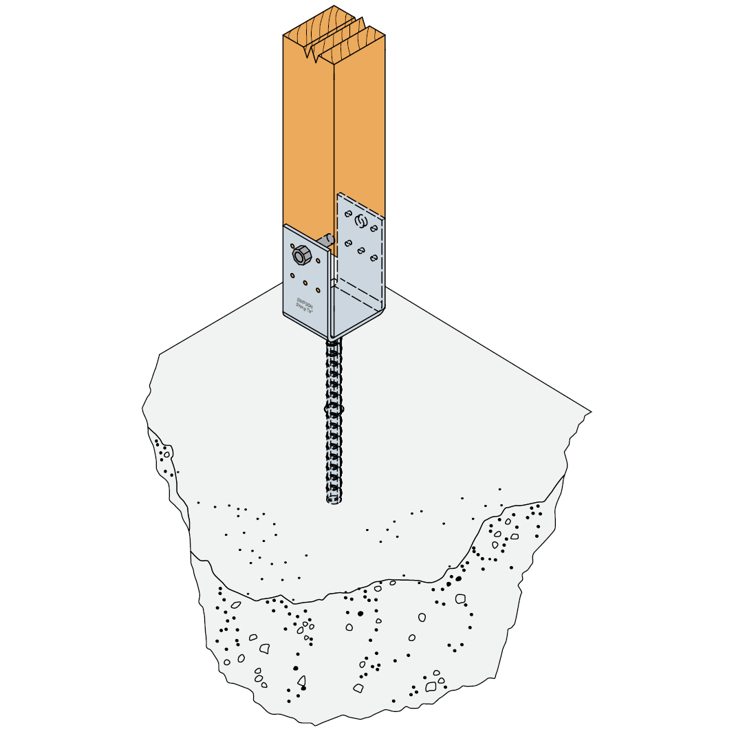 Il portapilastro PPD è adatto al fissaggio di supporti e pali in legno su fondazioni di calcestruzzo.