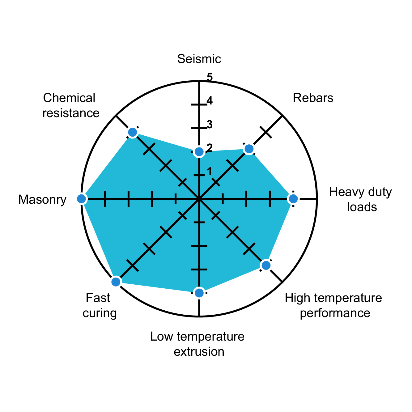 This formula provides high performances when anchoring threaded rods and rebar in cracked and uncracked concrete as well as in masonry.