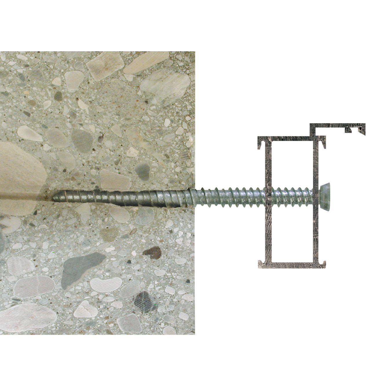 La turbovite VF è un fissaggio per calcestruzzo Ø7.5 mm dedicata al mondo del serramento per il fissaggio dei telai di porte e finestre su supporti di vario tipo.