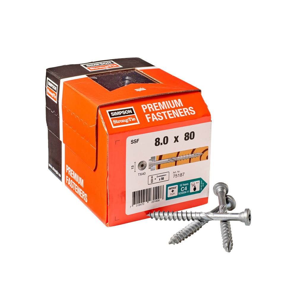 La vite SSF è una vite di collegamento per carichi pesanti progettata per applicazioni acciaio-legno. Il design della vite fornisce un'eccellente connessione all'acciaio e può trasferire carichi elevati. La testa piana con impronta Torx crea un risultato finale esteticamente migliore.